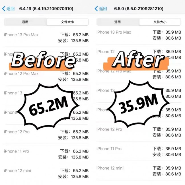 包体“瘦身”对比