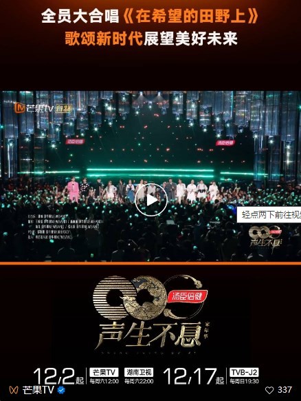 执笔中华之声,点睛家国之情,在接下来的旅程中,《声生不息·家年华》将分享更多时代好歌与时代传奇故事,探寻中华音乐的点滴足迹。节目于每周六芒果TV12:00,湖南卫视22:00播出,12月17日起每周日19:30在TVB-J2播出。